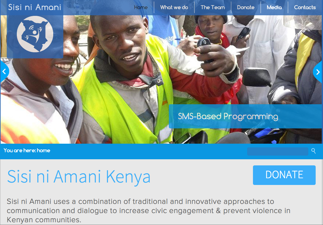 5. SiSi Ni Amani. Sisi Ni Amani Kenya has worked with local peace groups to set up an SMS-based programming available to subscribers through USSD code *762#. Subscribers are able to dial in for free from any Safaricom line to subscribe and receive SMS from SNA-K. The project aims at looking at rumors spreading via SMS and have a team of “peace-keepers” on the ground responding timely to it by directly addressing the problem.