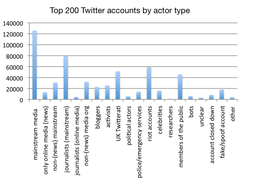5. Recents studies, like this one, and this one, and this other one, highlight that social media so far do not seem to carry a specific value when it comes to providing quality information as opposed to other sources. It also looks like it much less trusted than traditional media. Even in the social media sphere it looks like traditional media are still the one that people turn to, to understand what is going on, especially in times of incertitude. In this sense, it looks like traditional media is doing a good job at highlighting relevant information and guiding people through the noise of the social media chatter. This study form Farida Vis on the London Riots shows how the top 200 accounts during the riots where in fact Mainstream Media and Journalists: